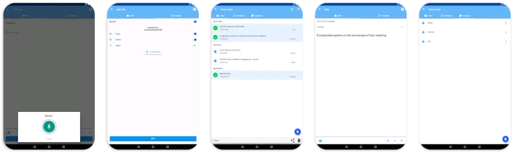 Voice notes is an application for quick writing of small notes, ideas with reminders, you can use this app for your daily schedule or weekly schedule and tasking, thats app that allows you to quickly and easily record short notes as well as important ideas with set reminders using speech recognition.